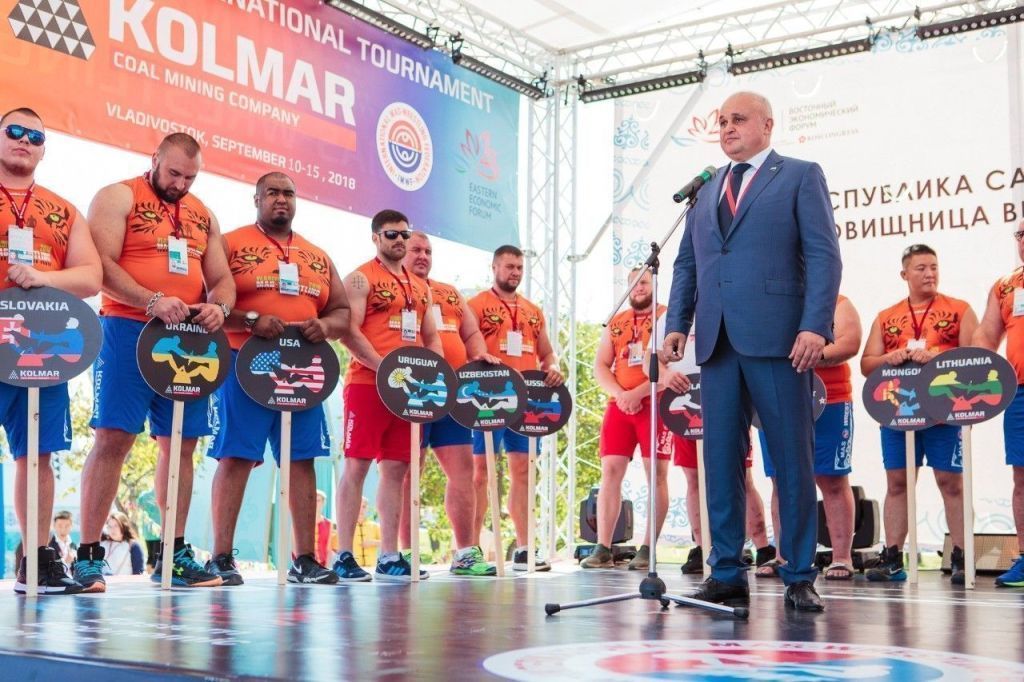 Спортсменов из четырех континентов первым тепло приветствовал Губернатор Кемеровской области, председатель Попечительского совета Международной федерации мас-рестлинга Сергей Цивилев. С его приходом в руководство Международной федерации развитие мас-рестлинга получило ощутимый толчок. Так, в прошлом году при финансовой поддержке с его стороны были проведены Международный турнир по мас-рестлингу среди стран АТР «Кубок УК «Колмар» в рамках ВЭФ и финал Кубка мира по мас-рестлингу в Москве. В октябре была оказана спонсорская помощь при организации работы площадки мас-рестлинга на Всемирном фестивале молодежи и студентов в Сочи.