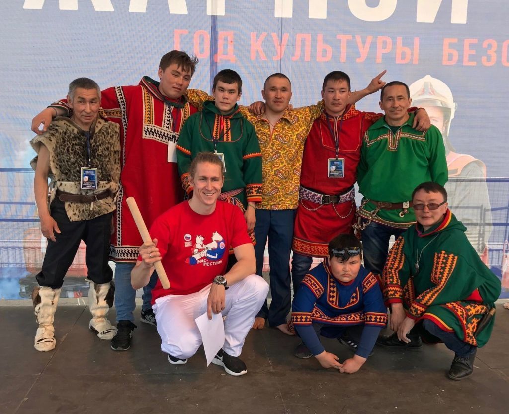 В эти весенние майские праздники посетителей парка на Фестивальной площади ждала обширная праздничная программа «Народы Севера приглашают друзей!». На большой уличной сцене сразу после выступления творческих коллективов из Севера начались спортивные соревнования. Мас-рестлинг стал первым видом спортивной части большого праздника.
