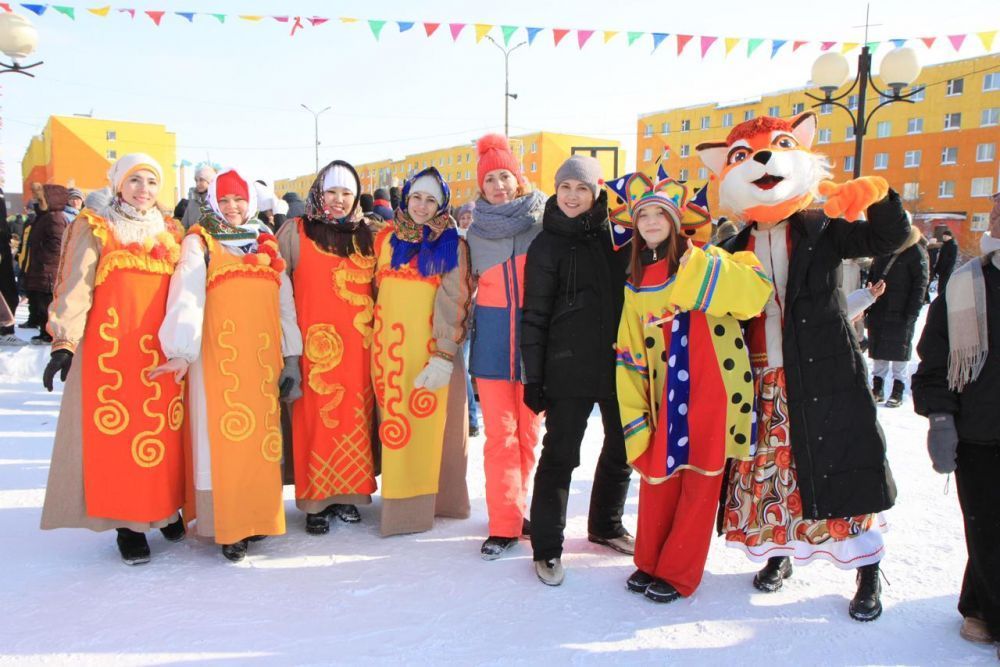 На празднике работало несколько арт-локаций: врата счастья, колесо удачи, семейная фотозона, загон с якутскими лошадками, кухня с горячим чаем и блинами, снежное арт-полотно для самых маленьких художников.