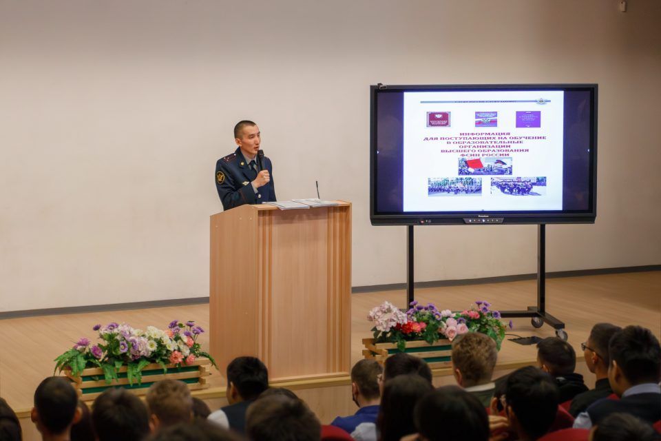 Старший инспектор группы профессиональной подготовки Бэргэн Бурцев рассказал учащимся 9–11-х классов средней общеобразовательной школы № 25 о службе в уголовно-исполнительной системе, социальных гарантиях и перспективах, а также о поступлении в ведомственные учебные заведения Федеральной службы исполнения наказаний России.