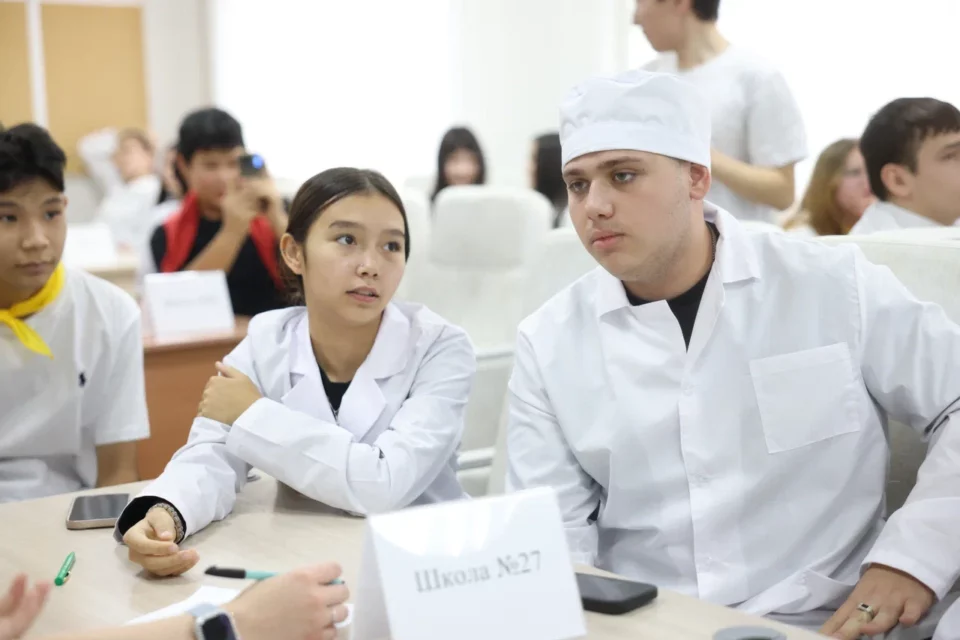 Юные знатоки медицины соревновались в шести раундах, отвечая на вопросы, охватывающие широкий спектр знаний: от общеобразовательных предметов до узкоспециализированных медицинских тем и логических задач. Особое внимание было уделено практическим навыкам – один из туров был посвящен отработке сердечно-легочной реанимации на специальных манекенах.