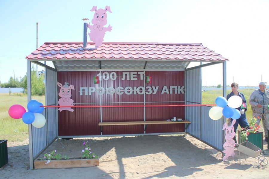 Отныне работники Хатасского свинокомплекса не будут стоять в жару и стужу, в дождь и зной под открытым небом, ожидая автобус. Об их удобстве позаботилась родная профсоюзная организация, поставив новую симпатичную остановку. Сегодня руководство предприятия, профсоюзный комитет и работники приняли участие в торжественном открытии остановки.