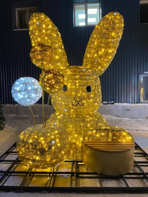 И хотя до Нового года еще больше месяца, уже невозможно не остановиться возле светящихся арт-объектов в виде фигуры озорного зайца и великолепной арки с оленям над входом в офис Ассоциации. Так и приходят сразу в голову слова из песни «…неси меня олень в свою страну оленью….».