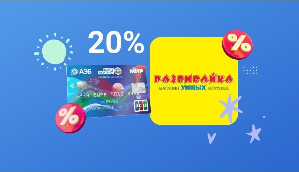 С 18 мая по 1 июня совершите покупку на любую сумму в магазине умных игрушек «Развивайка» по Карте жителя Якутии и получите 20% скидку на весь чек. Количество покупок не ограничено.