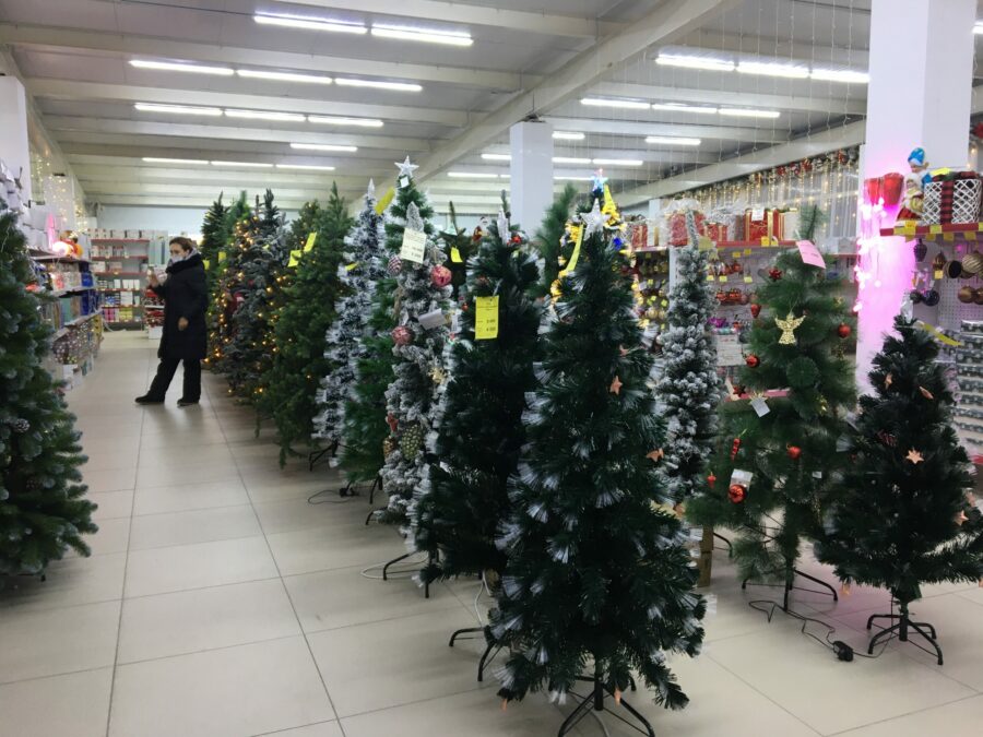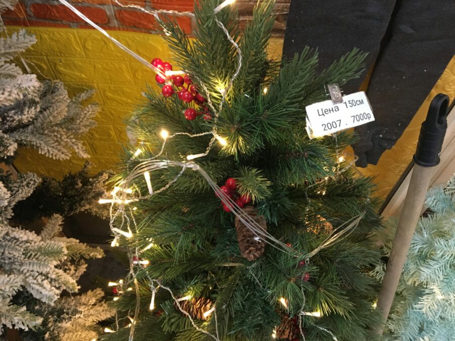Продажа елок в основном ведется на улице. В помещении их раз-два и обчелся. Цены стартуют от 1500 рублей за полуметровую елку с огоньками. И до 10 тысяч за 2-метровую.