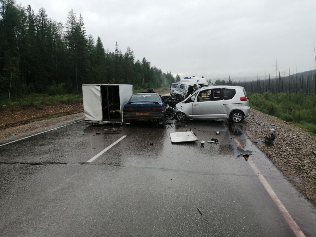 Напомним, что 25 июня на 650 км ФАД «Лена» столкнулись три автомобиля: «Тойота Порте», «Тойота Карина» и «Ниссан Атлас». По предварительным данным, водитель автомобиля «Тойота Порте» при осуществлении обгона большегруза не убедился в безопасности манёвра и совершил столкновение с микрогрузовиком «Ниссан Атлас», следовавшим во встречном направлении. Водитель автомашины «Тойота Карина», двигавшейся в попутном направлении с «Ниссаном», не успел затормозить и врезался в микрогрузовик.
