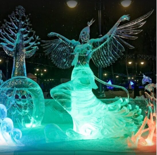 Третье место так же у двух команд — дипломы и сертификаты на 50 тысяч рублей получили мастера из Томска (команда «Снежинка»), которые изготовили композицию «Из пруда без труда», и скульпторы из Якутска (команда «Золотые крылья») с композицией «Туйаарыма Куо».