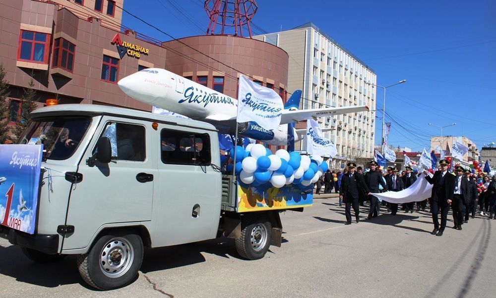 Коллектив авиакомпании «Якутия», наряду с представителями предприятий, организаций города и республики, принял участие в праздничном шествии, посвящённом 1 мая.