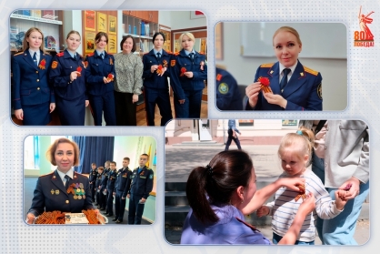 В Республике Крым георгиевские ленты были собственноручно изготовлены сотрудниками Главного следственного управления. Офицеры с почетом и уважением бережно прикрепили символ подвига и на повседневную форму, и на парадный китель, выражая тем самым благодарность ветеранам и труженикам тыла за Великую Победу.