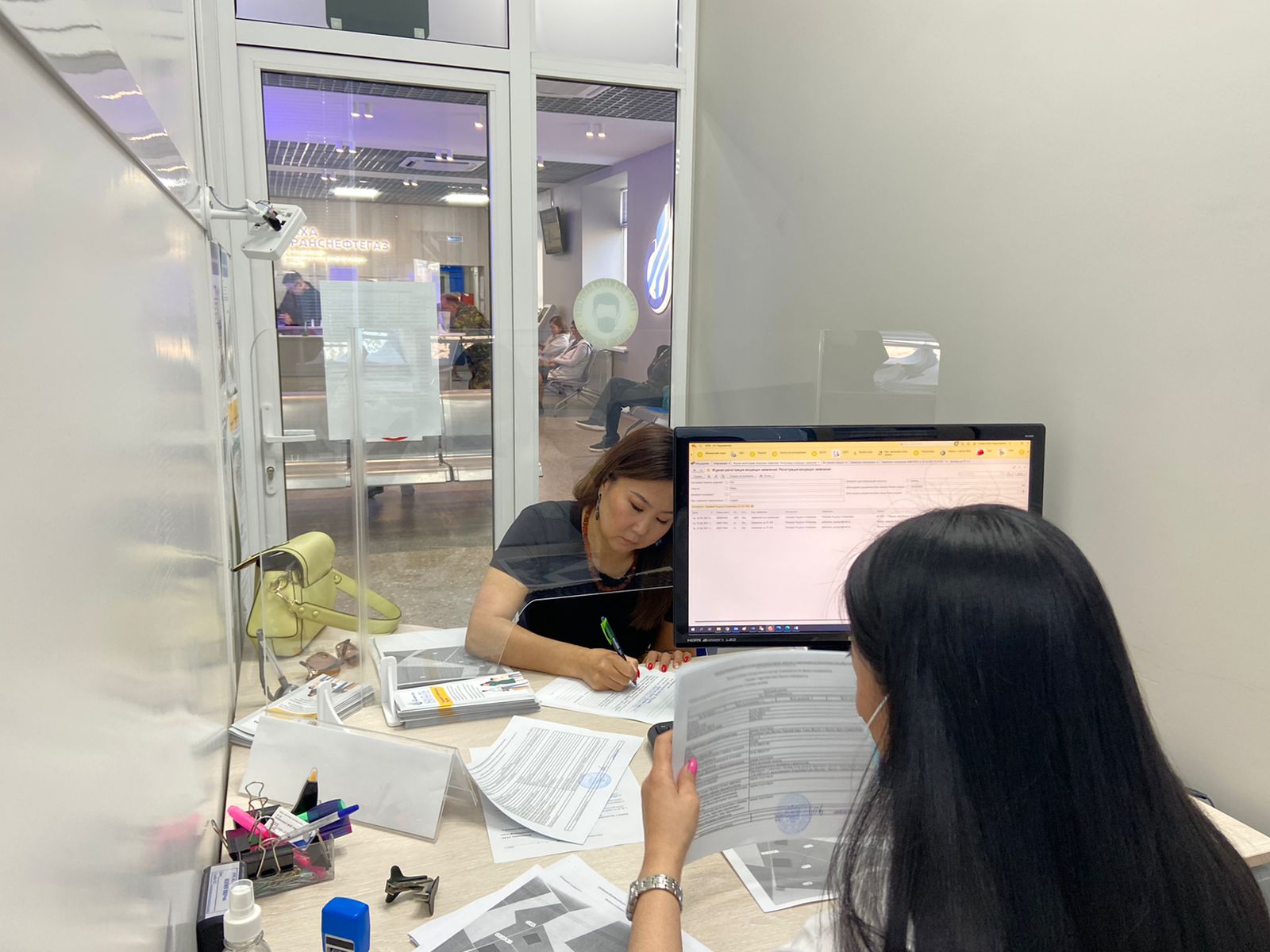 В службу «Единого окна» компании на ул. Петра Алексеева, 64, подошла жительница Якутска Любовь Неймохова. Оператор уточняет наличие документов и вносит данные в систему оформления заявок. У заявительницы все документы на руках, прием длится пару минут.