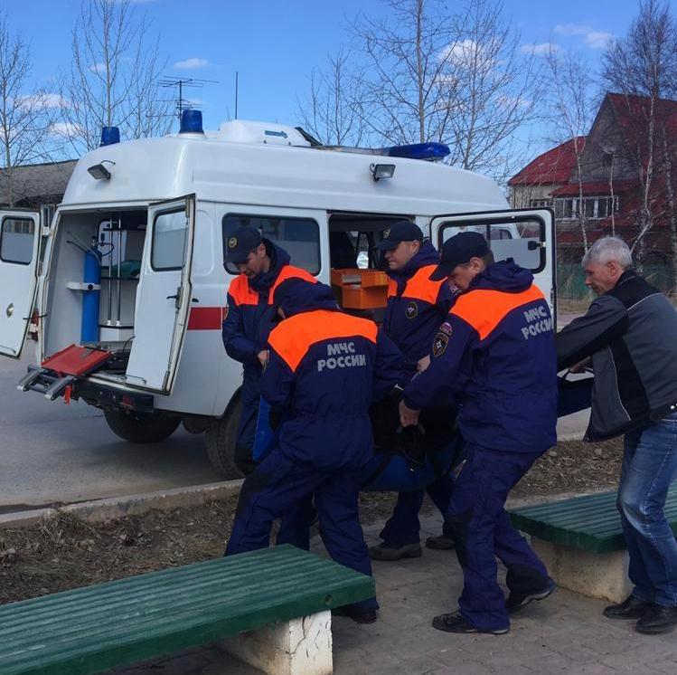 Спасатели, осмотрев его, вызвали «скорую». Когда приехала карета «03», они уложили дедушку на носилки, помогли погрузить его в автомобиль для транспортировки в больницу.