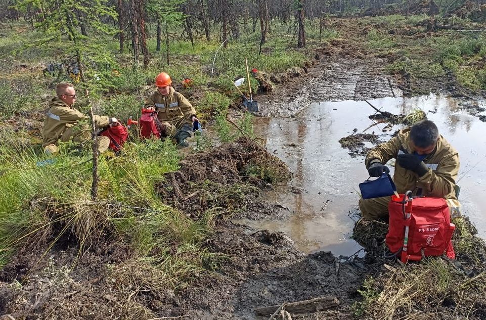 В Оймяконском районе спасатели продолжают борьбу с ландшафтным пожаром. Они провели опашку и прокладку минерализованной полосы бульдозером. Пожар тушат при помощи ранцевых лесных огнетушителей, автоцистерны АЦ-40 и ручных инструментов. Круглосуточно проводится окарауливание кромки возгорания.