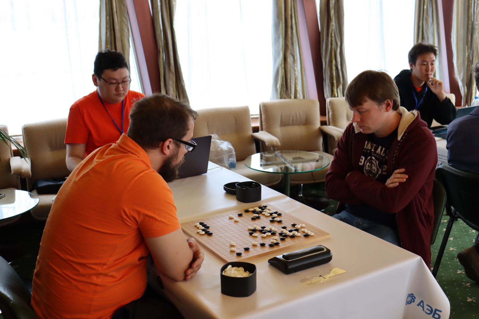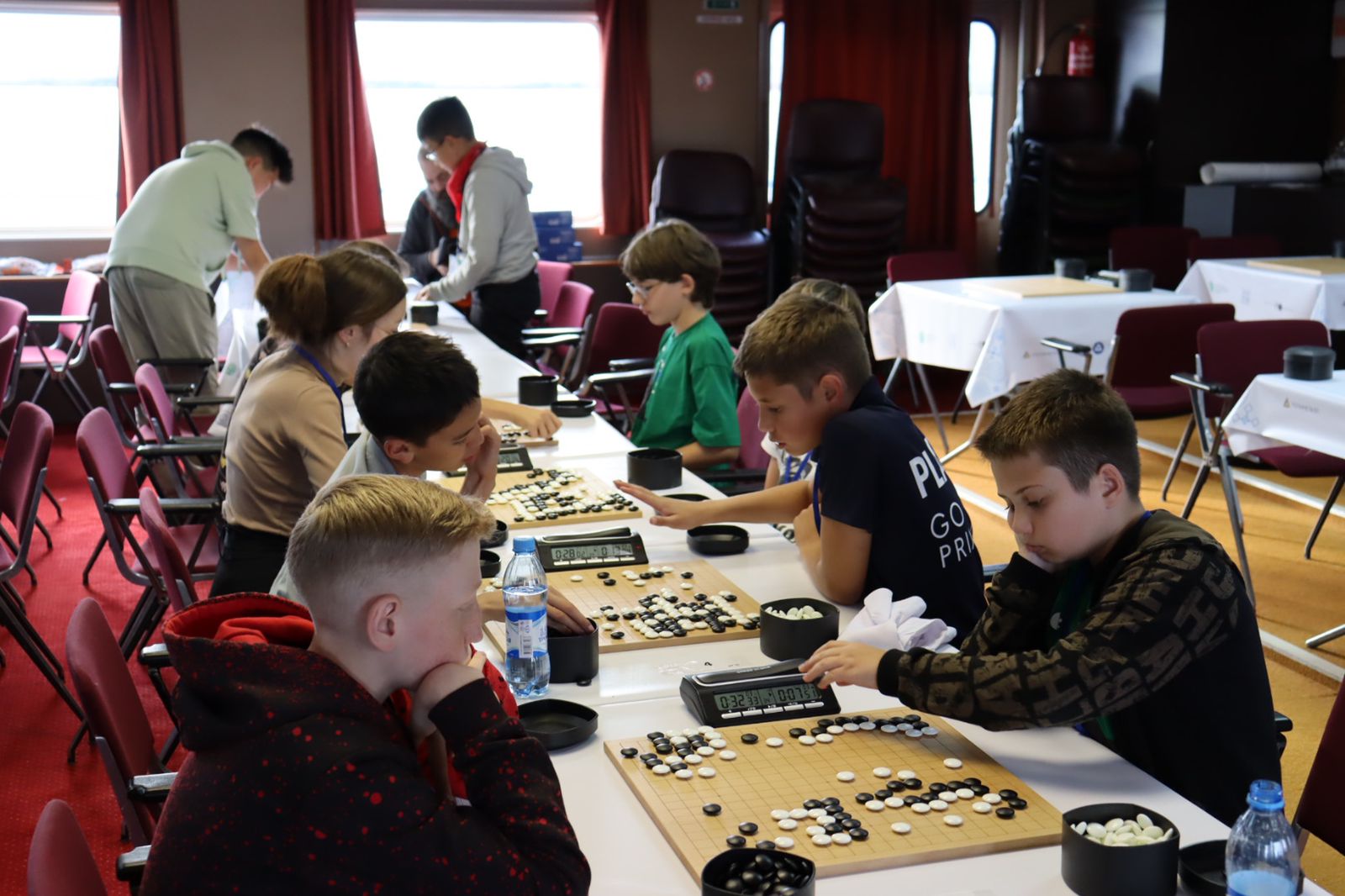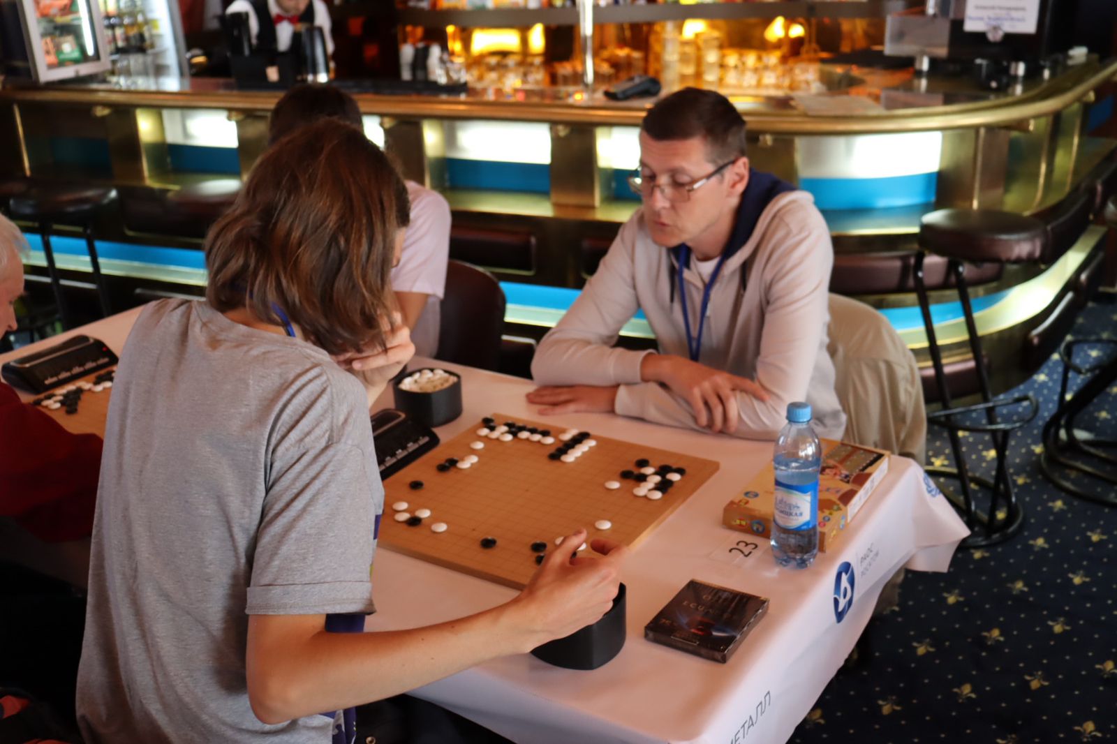 Как рассказал вице-президент Российской Федерации го Иннокентий Дмитриев, всего на теплоходе организованы три площадки. На первых двух проходит финал Кубка России по го, а на последнем — первенство Дальневосточного федерального округа.