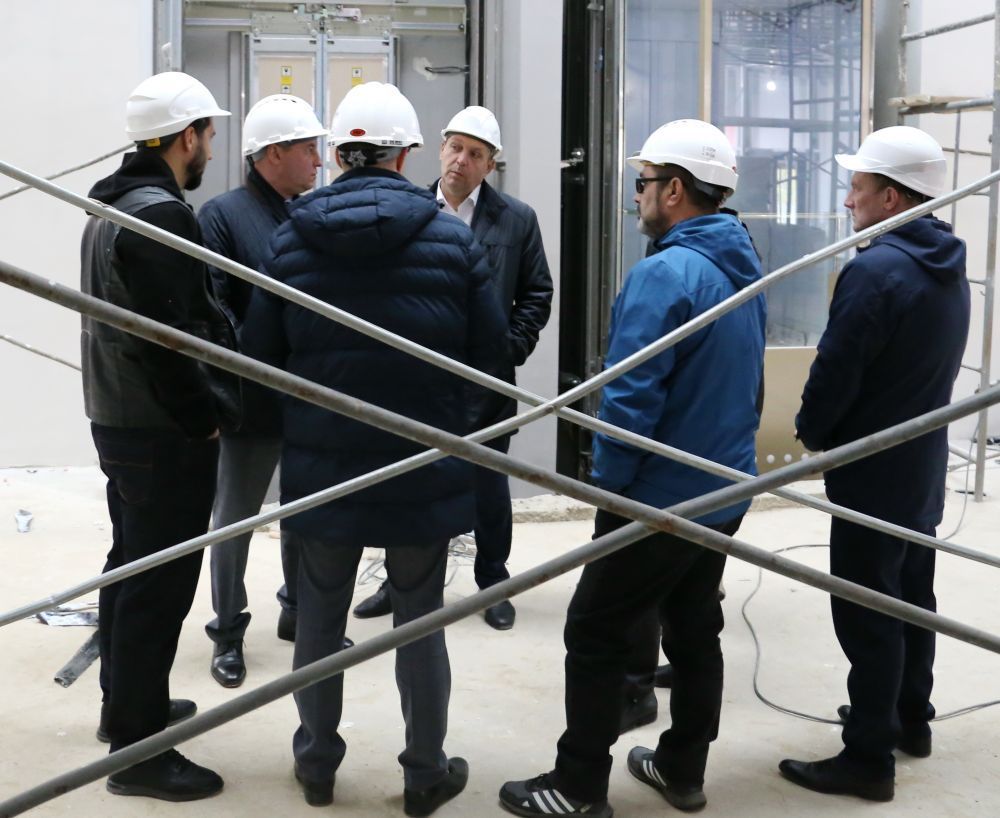 Александр Басыров провел выездное совещание на строительной площадке Дворца детства. Там сейчас завершают работы по благоустройству прилегающей территории. Асфальтирование практически завершено, рабочие укладывают тротуарную плитку, началось утепление фасада со стороны ул. Ойунского. Предстоит установить декоративное, а потом и внешнее ограждение. Внутри корпуса электрики тянут кабели видеонаблюдения, в углу сложено специальное звукопоглощающее покрытие для просмотрового зала. Специалисты недавно закончили монтаж лифтов и получили на них необходимые допуски. В дальнейшем лицевая часть лифтовых шахт в фойе будет закрыта специальными витражами, которые сейчас складированы рядом. Подрядчик информирует, что доставку оставшихся материалов должен осуществить не позднее октября. В основном это двери внутренних помещений.