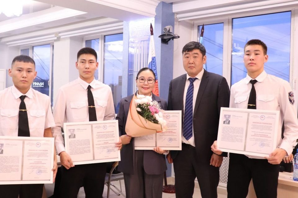 Заместитель директора «Дорог Арктики» Сергей Сивцев вручил стипендии преподавателю Владимиру Никитину и студентам Олесе Суярковой, Антону Шадрину и Самсону Кириллину Якутского индустриально-педагогического колледжа.