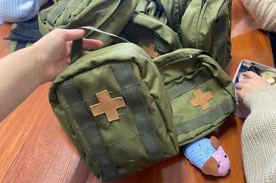 Аптечки сделаны из прочного материала «кордура». Внутри находятся карманы для мелких предметов, эластичные ремни для хранения бинтов, ваты и прочего. Аптечка компактная и вместительная, имеет кнопки, чтобы застегнуть ее на пояс или одежду, поделилась студентка третьего курса пединститута Уйгулаана Григорьева: «Я проводила тепловую обработку ткани, сметывала части изделий временным швом, булавкой. Мы должны оказывать посильную помощь, мобилизованные нуждаются в вещах первой необходимости».