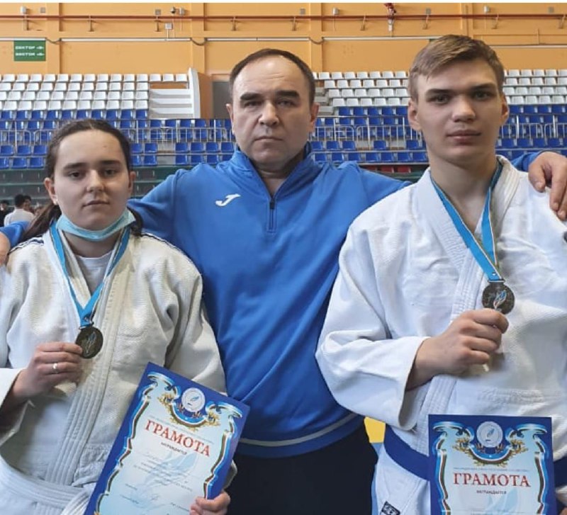 С тренером и одноклубником на чемпионате республики в Якутске в 2021 году. Фото предоставлено героиней материала.
