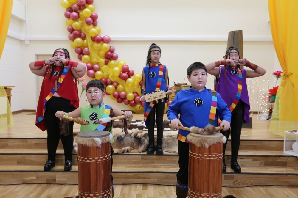 В актовом зале уложена спортивная паркетная доска, установлены большие зеркала и гимнастические станки для занятий танцами. Новая сцена позволяет проводить театральные постановки. Колорит оформлению зала придал потолок в национальном якутском стиле.