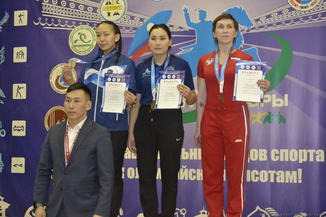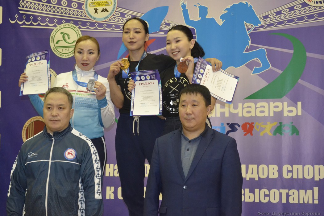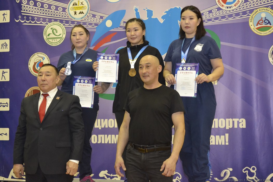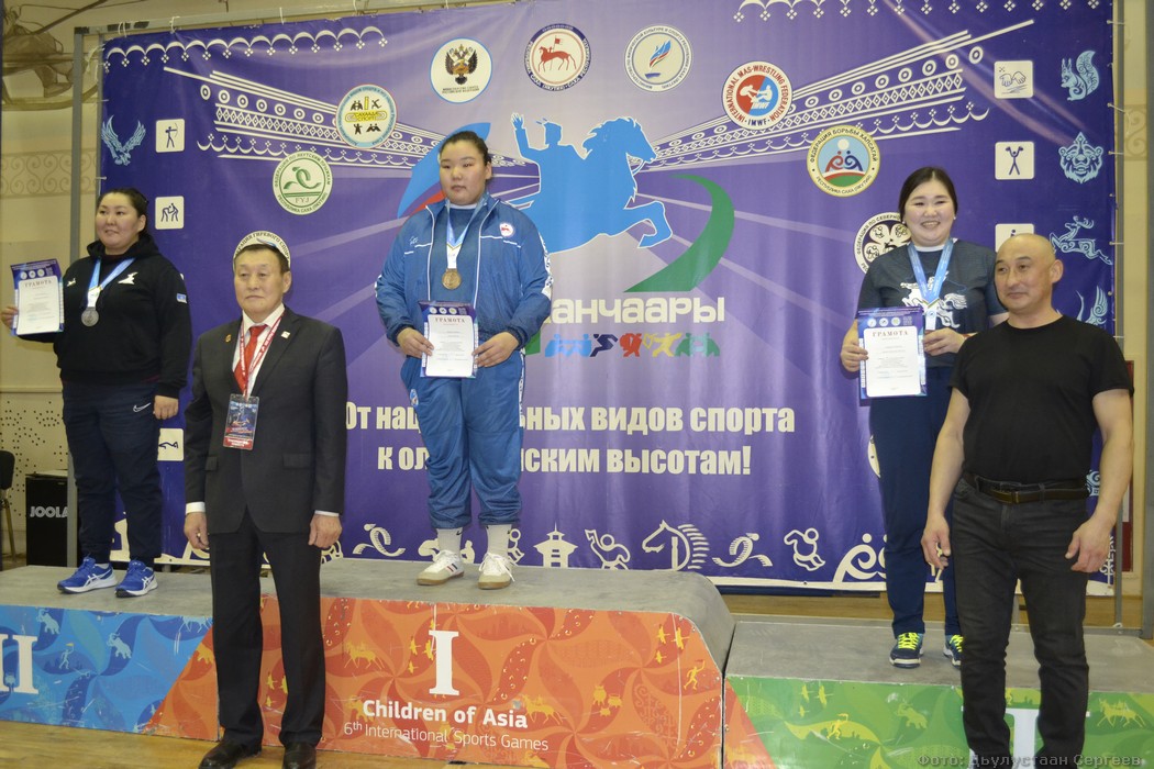 Еще одна чемпионка мира Наталья Черноградская из Верхневилюйска уверенно первенствовала в категории до 55 кг, как и Норайаана Трофимова из Амгинского улуса (65 кг), Сайына Сивцева из Усть-Алданского (85 кг). В супертяжелом весе в копилку Амгинского улуса золотую медаль принесла Татьяна Баишева, дочь Анатолия Баишева. Днем ранее сын легендарного мас-рестлера Егор Баишев отличился бронзовой наградой в категории до 105 кг.