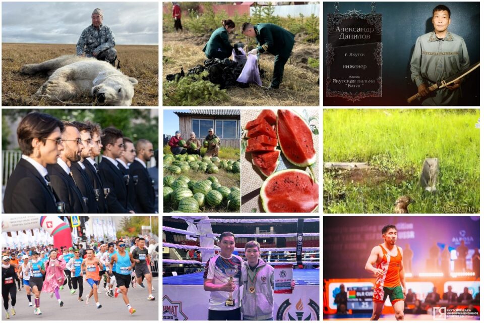 Двести арбузов вырастила в огороде жительница Якутии. Бастрыкин взял на контроль дело о пропаже охотника в Якутии. Глава Якутии принял участие в экспедиции по авиамониторингу белых медведей. Якутяне высадили 600 сосен для геоглифа «Победа-80». Массовый забег «ЭтноРан» провели в Якутске в День города. Чем запомнилась уходящая неделя — читайте в обзоре.