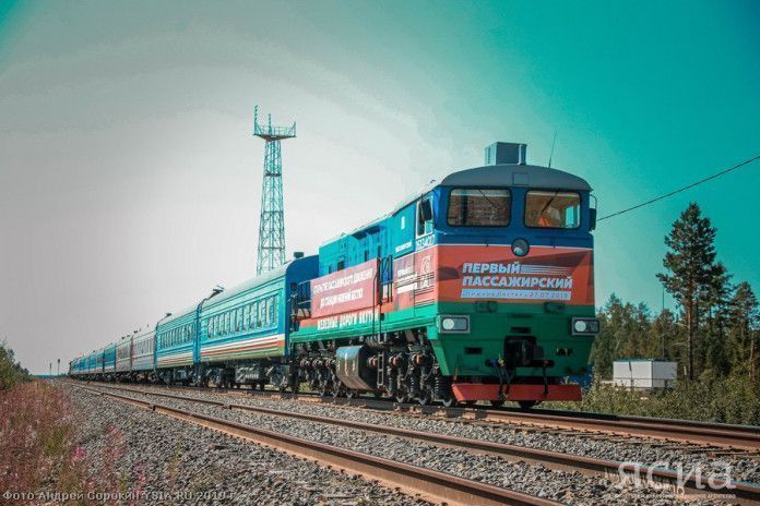 Первый пассажирский состав на станцию привел локомотив под управлением машиниста Юрия Пыльцына и помощника машиниста Андрея Москвитина, выпускника Транспортного техникума поселка Нижний Бестях.