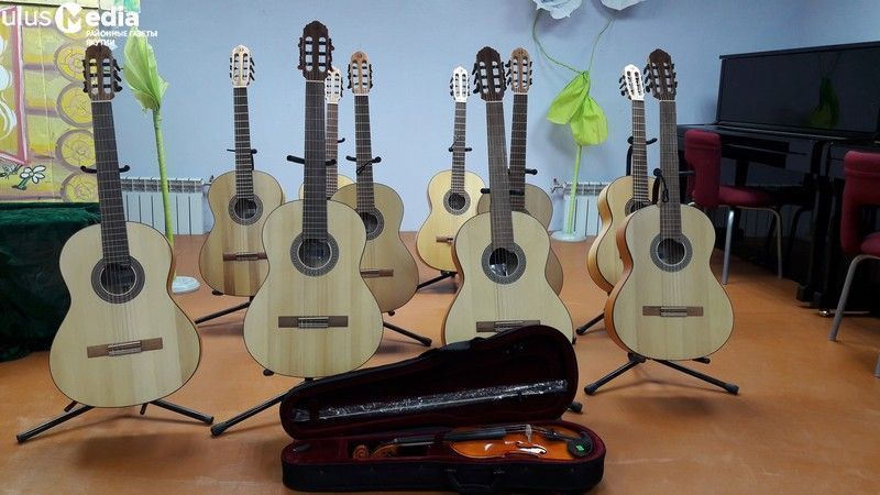 На радость ученикам и педагогам все оборудование доставлено в срок в целости и сохранности, и теперь в кабинетах стоят новые ученические парты и преподавательские столы, 10 гитар и домбра фирмы «Doff», три пианино российского производства «Михаил Глинка», три ученических баяна «Этюд», две акустические пассивные системы и активный микшерный пульт, учебная литература в ассортименте и многое другое.