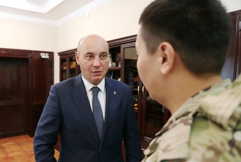 Технические средства противоборства БПЛА постоянно развиваются. Глава Мирнинского района рассказывает бойцам, что на деньги, собранные жителями алмазного края закупаются антидроновые детекторы: