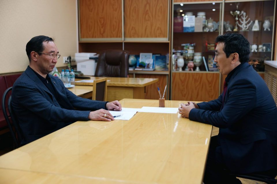 Айсен Николаев встретился с главой Аллаиховского района Яковом Елисеевым. Руководитель республики проверил ход исполнения поручений по социально-экономическому развитию муниципального образования, данных в предыдущие годы.