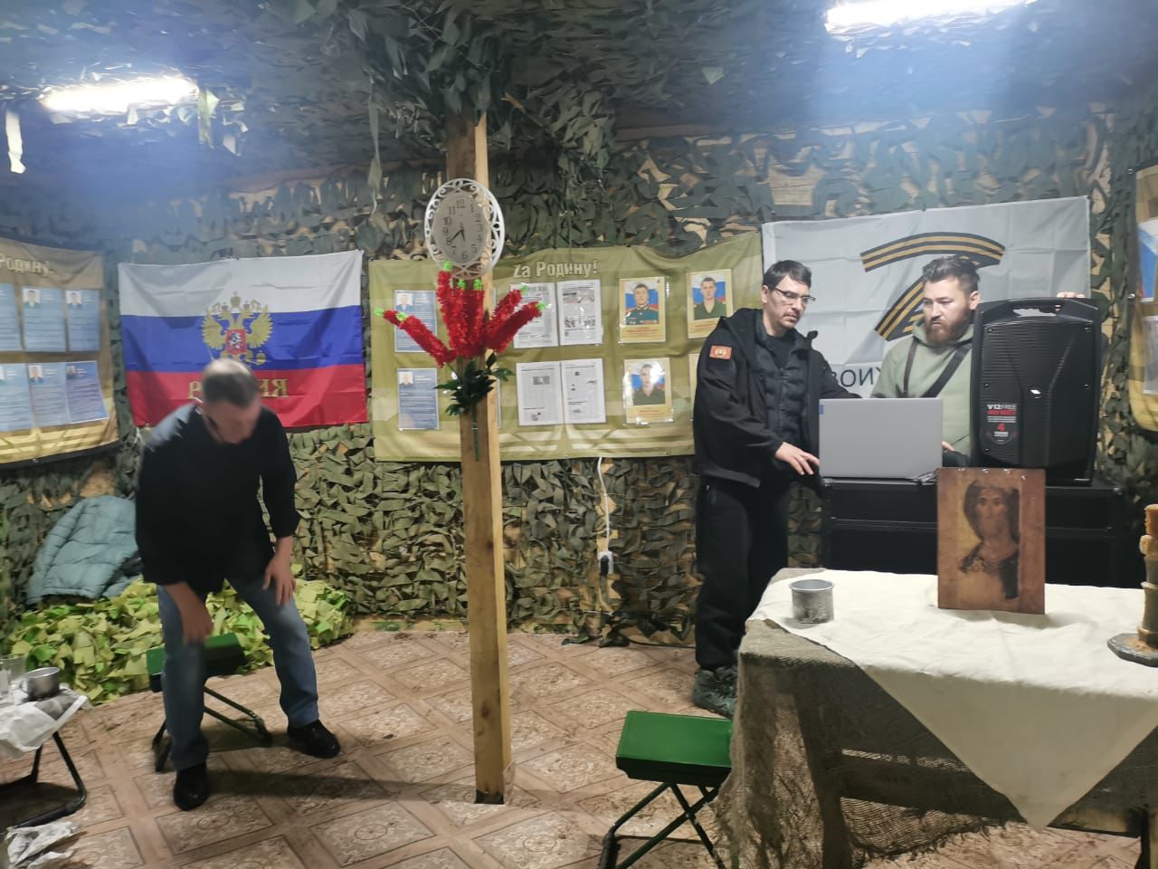 «Выступаем в блиндажах, под дождем, под грохотом взрывов, в госпиталях. Проходит очень плотная работа, особенно для актера Владимира Заманкова. Художник Андрей Волков из подручных средств создает комфортные условия для работы. Все проходит очень душевно. Особенно теплые встречи проходят на полигонах, где ребята находятся на передовых линиях боевых действий», — рассказал Сергей Сидоров .