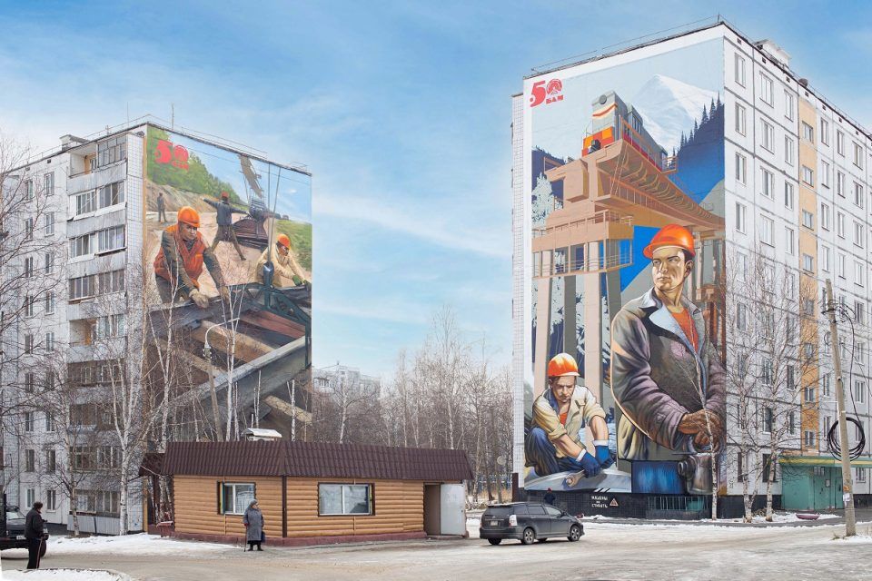 Три девятиэтажных дома расписали художники в Тынде. На торцах зданий появилась серия монументальных рисунков, посвященных истории строительства Байкало-Амурской магистрали. Каждый арт-объект получил свое название: «Атланты», «Вперед» и «Путеукладчики».