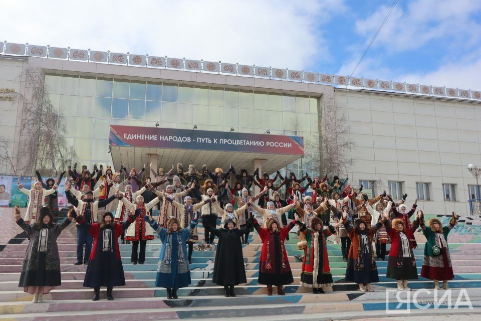 В Якутске у Дома дружбы народов им. А. Е. Кулаковского прошел флешмоб мастеров народного промысла «Узоры Якутии». Более 50 мастеров исполнили традиционный танец. Мероприятие приурочено ко Дню образования республики, сообщает ЯСИА.