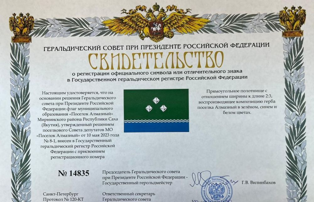 В поселке Алмазный произошло значимое событие - в Геральдическом Совете при Президенте Российской Федерации зарегистрировали официальную символику этого муниципального образования.