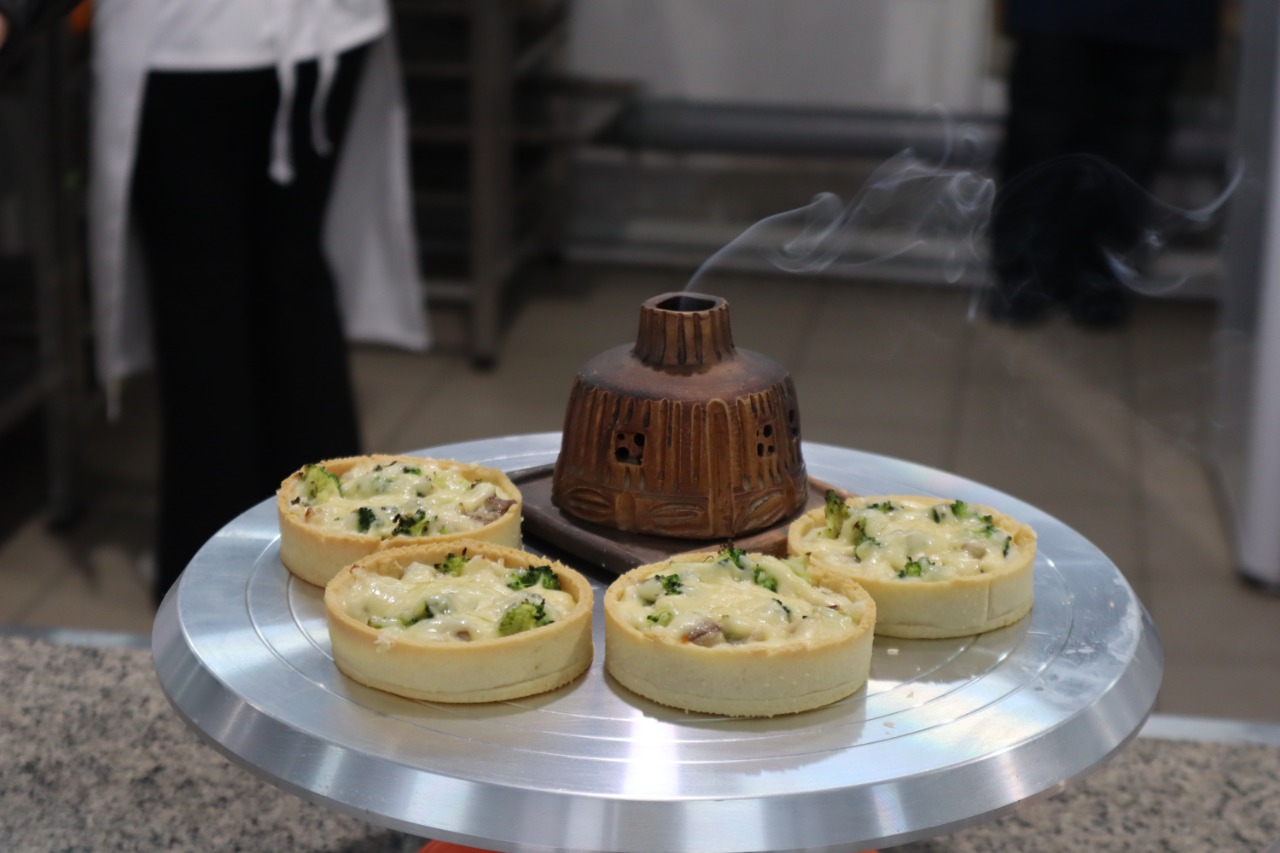 Студентки Якутского техникума сервиса приготовили мини-пироги, закоптив их дымом от багульника под крышкой. Придуманный ими метод насыщает блюдо ароматом якутского леса и символизирует обряд очищения.