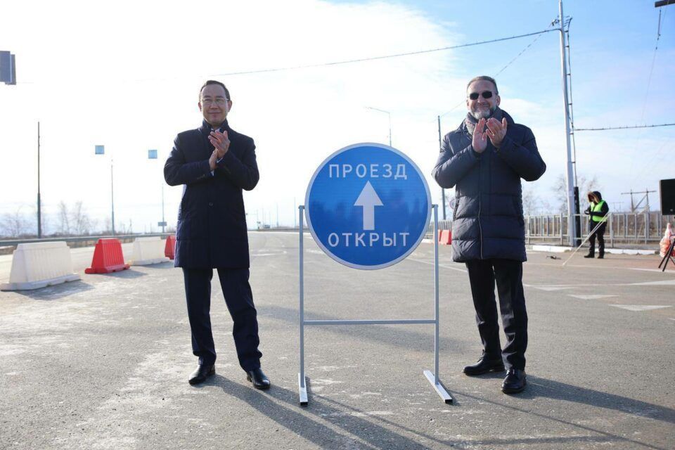 В пятницу состоялось официальное открытие после масштабной реконструкции участка автодороги «Нам» на территории города Якутска. В мероприятии участвовали глава Якутии Айсен Николаев и заместитель руководителя Федерального дорожного агентства (Росавтодор) Игорь Костюченко.
