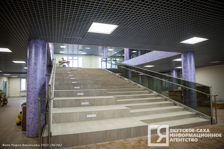Строительная готовность объекта составляет 96%. На данный момент ведутся пусконаладочные работы, сборка и установка мебели и оборудования, а также монтаж столовой.