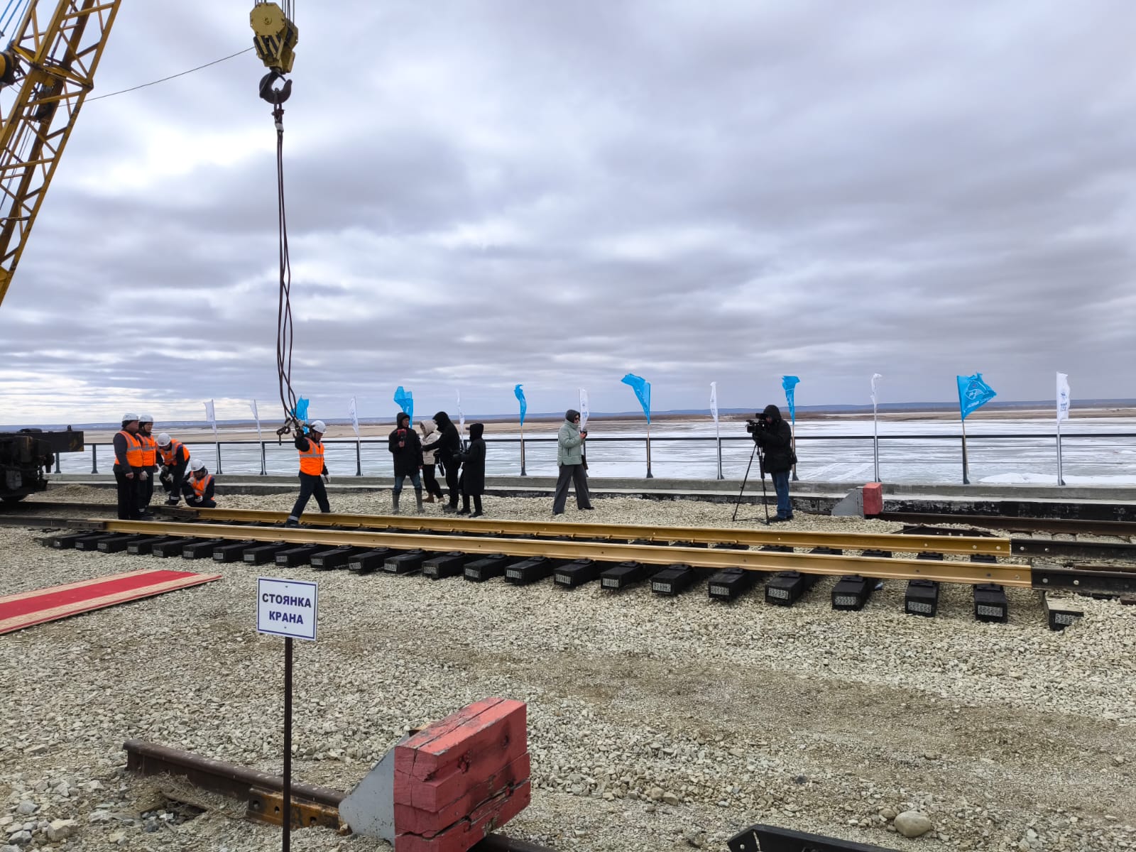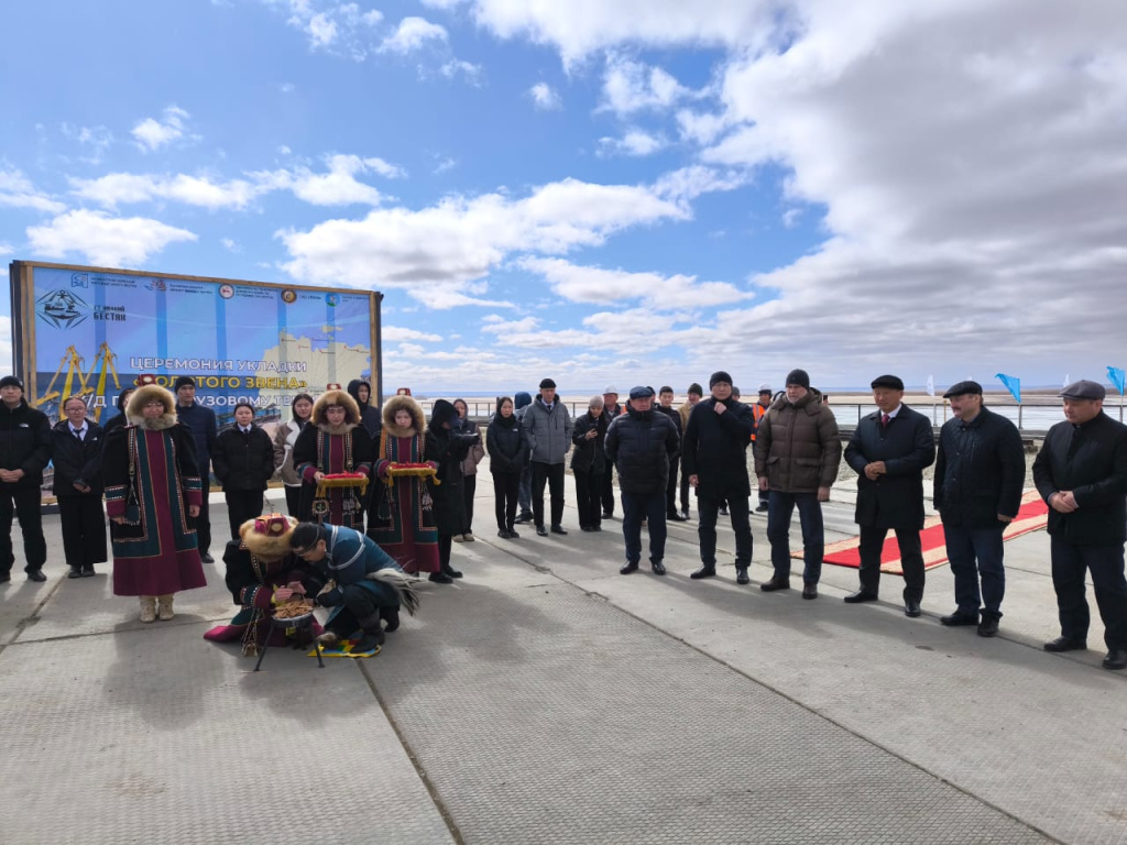 В конце апреля состоялась церемония укладки «золотого звена» железнодорожного подъездного пути от станции Нижний Бестях до грузового терминала ПАО «Ленское речное пароходство».