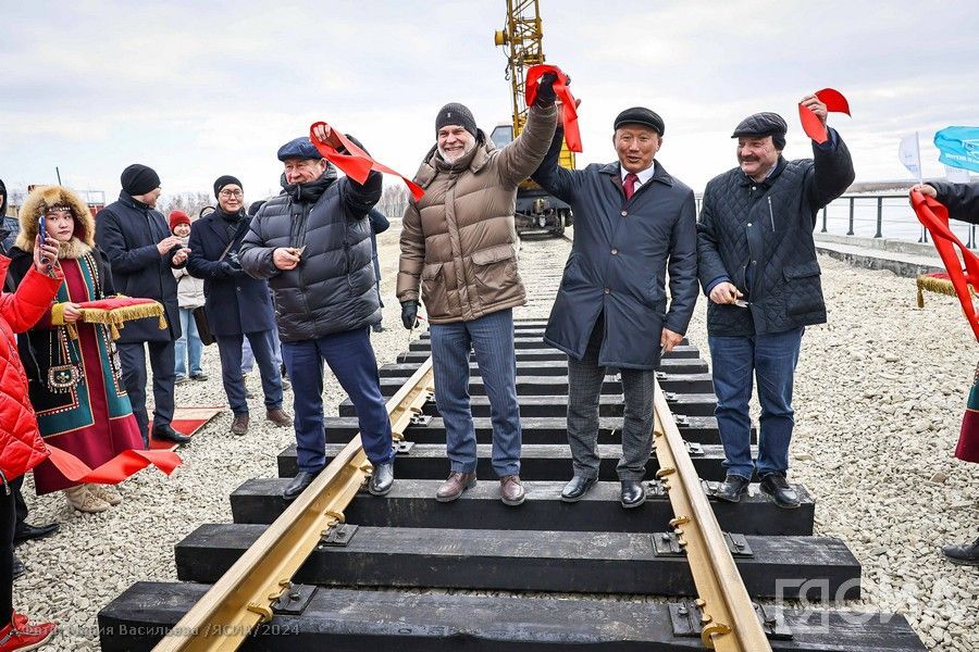 Сегодня, 25 апреля, состоялась торжественная укладка «золотого звена» подъездных железнодорожных путей к грузовому терминалу «Нижний Бестях», стоящего на берегу реки Лены. Приход железной дороги к терминалу позволит обеспечить прямую перевалку грузов из вагонов на речные суда для доставки в отдаленные районы республики, в том в числе для обеспечения северного завоза.