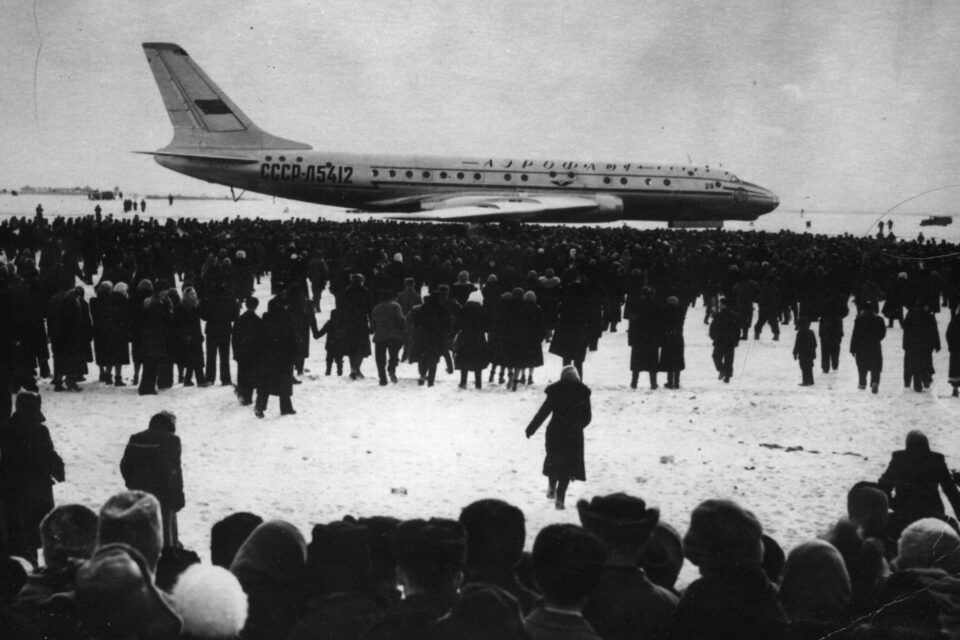 В марте 1957 года в аэропорту Якутска прошли летные и наземные испытания в условиях низких температур первого отечественного реактивного пассажирского самолета Ту-104. Воздушного гиганта встречали жители и гости столицы республики.