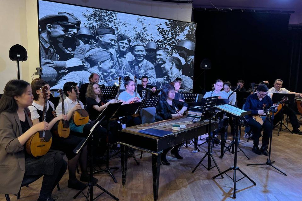 Песни о Великой Победе исполнили студенты-вокалисты Василий Пинигин, Алексей Солдатов, Яков Слепцов и Леонид Готовцев в сопровождении оркестра народных инструментов вуза. Прозвучали такие известные песни, как «Журавли», «Ехал я из Берлина», «Смуглянка», «День Победы» и «Катюша».