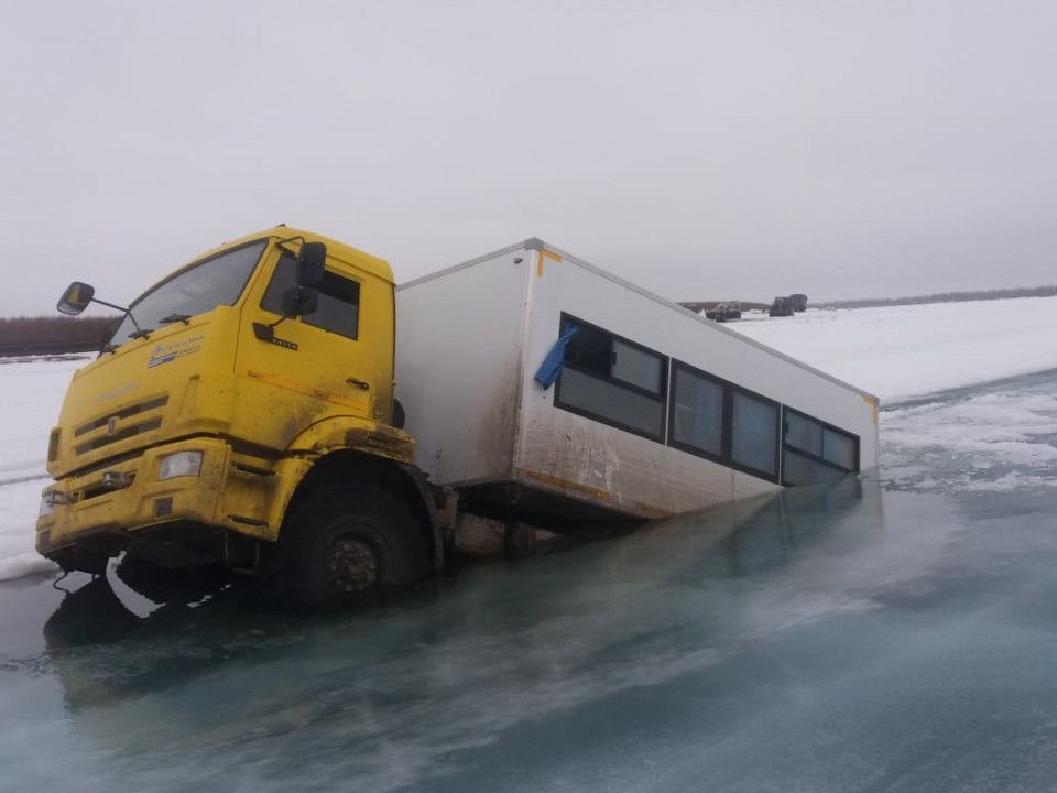 Как сообщили в Главном управление МЧС России по Якутии, караван состоял из 8 машин и 15 человек. Провал автомобилей произошел в 90 км от Черского. Основной груз транспорта – металлоконструкции.