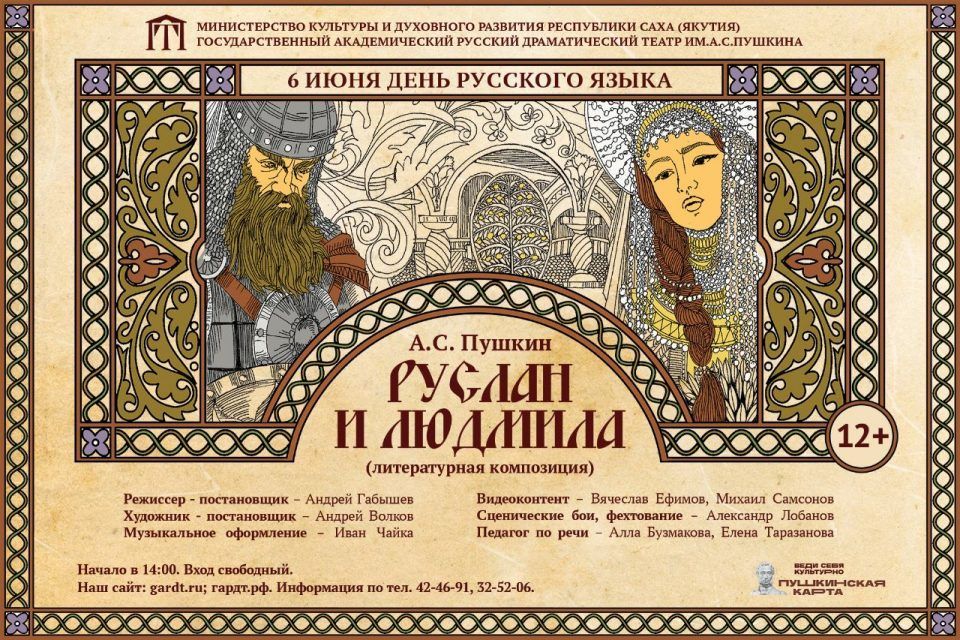 В Русском театре им. А.С. Пушкина в Якутске 6 июня состоится премьерный показ постановки «Руслан и Людмила». Как сообщает пресс-служба театра, это будет литературная композиция, полноценный игровой спектакль планируют показать в 2024 году.