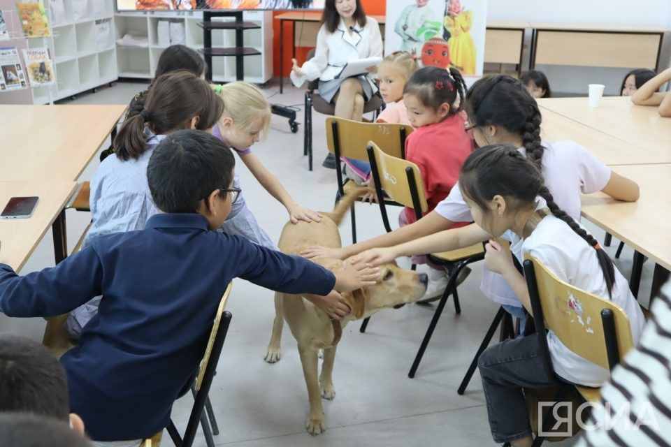 В Детской точке кипения – центр чтения в Якутска 30 августа состоялась встреча книжного клуба «Библиопёс». Якутская писательница сказок, автор сказки «Невероятная история Кындыкан» Лидия Тарасова провела детям мастер-класс по созданию историй. Традиционно любовь к чтению детям помогала прививать лабрадор по кличке Лекси.