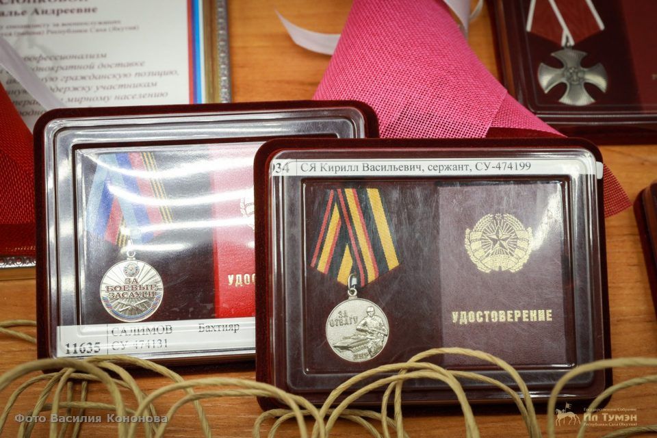 В Ил Тумэне 30 мая сенатор Российской Федерации, член Комитета Совета Федерации по федеративному устройству, региональной политике, местному самоуправлению и делам Севера Сахамин Афанасьев и заместитель председателя Госсобрания (Ил Тумэн) Афанасий Владимиров вручили государственные награды участникам СВО за проявленные отвагу, героизм при выполнении задач в рамках спецоперации.