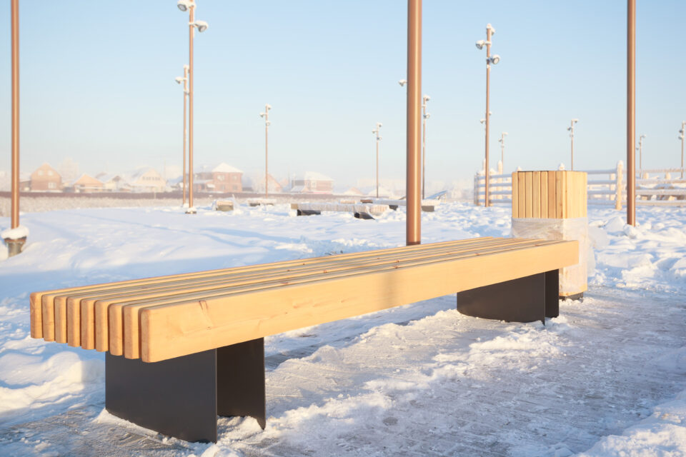 Скамейки уличные без спинки и урны металлические изготовлены осужденными для нового общественного пространства «Ытык Сир», расположенного рядом с парком Победы в Якутске.