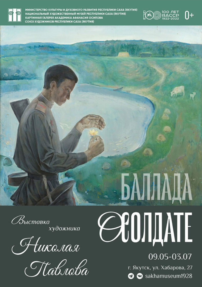 С 9 мая 2022 г. в Картинной галерее академика Афанасия Осипова откроется выставка «Баллада о солдате», представляющая творчество художника-живописца, заслуженного деятеля искусств Республики Саха (Якутия), лауреата премии Ленинского комсомола Якутии, члена Союза художников России Николая Афанасьевича Павлова.