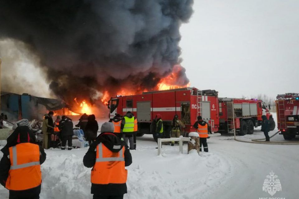 В результате пожара огнем поврежден гараж по всей площади – 500 квадратных метров.