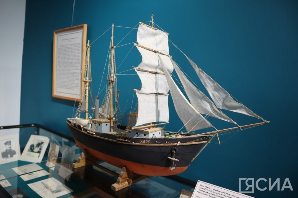 В первом зале музея выставлены портреты руководителей и участников экспедиций Академии наук с XVIII по начало XX века и макет яхты «Заря».