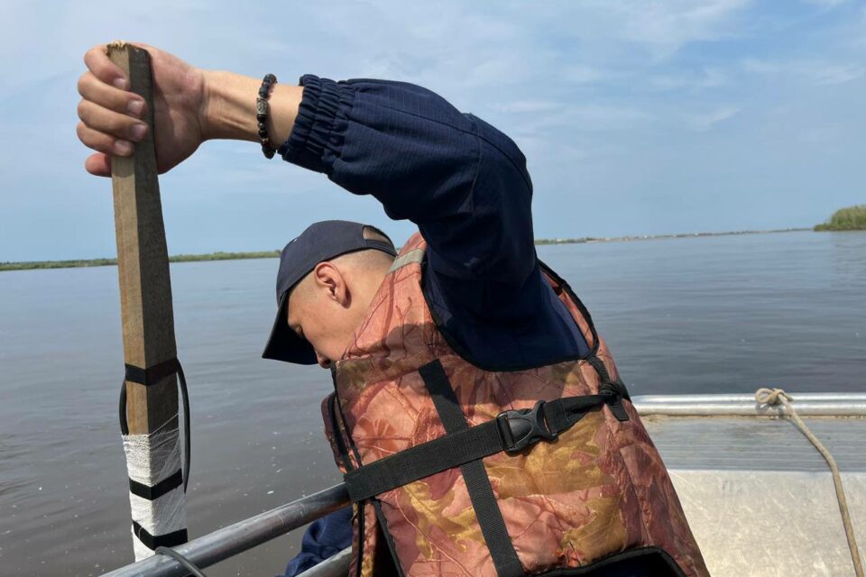 Поисковые работы ведутся при помощи гидролокатора бокового обзора. «Обследуем участки ниже места происшествия, устье протоки, отмели, места, где могут быть ямы», — пояснил старший группы водолазов Алексей Белин.