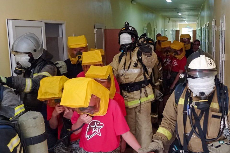 По замыслу учения условное возгорание произошло в помещении дневного пребывания детей на втором этаже здания детского оздоровительного лагеря «Мужество». В результате «пожара» возникло сильное «задымление», создалась угроза для жизни и здоровья людей, а также угроза распространения огня в смежные помещения и на кровлю здания.