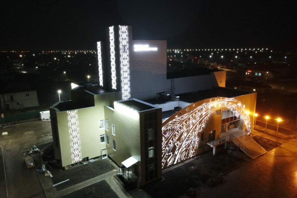 Здание двухэтажное, но есть ещё технический этаж, где расположена операторская, высота вместе с башней – 20 метров, сообщил начальник участка от «ИФК «РФА Инвест» Иван Петров. Самое высокое здание в Нюрбе, тем более что расположено на некотором возвышении, подчеркнул замдиректора театра.